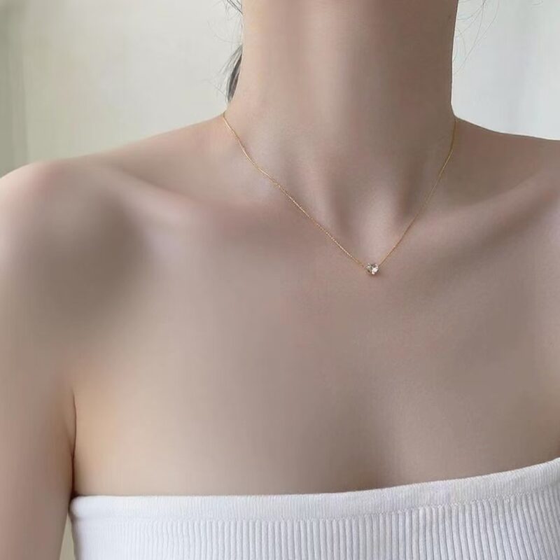 18k Gold Clavicle Chain Titanium Steel Necklace Design Sense Bow Water Drop Love Chain