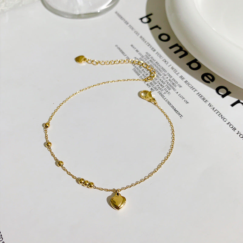 18K gold love bead anklet women’s light luxury ins wind foot chain hypoallergenic simple cold wind factory direct sales