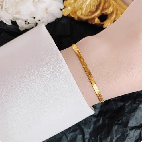 18k Gold High-quality Gold Snake Bone Chain Anklet Women's Ins Cold Wind Simple Forest