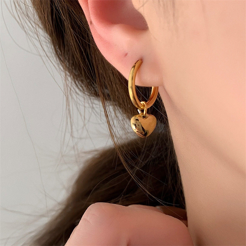 Circle earrings, snap-on love earrings, cold wind, women’s small circles, girly titanium steel, non-fading, heart-shaped earrings