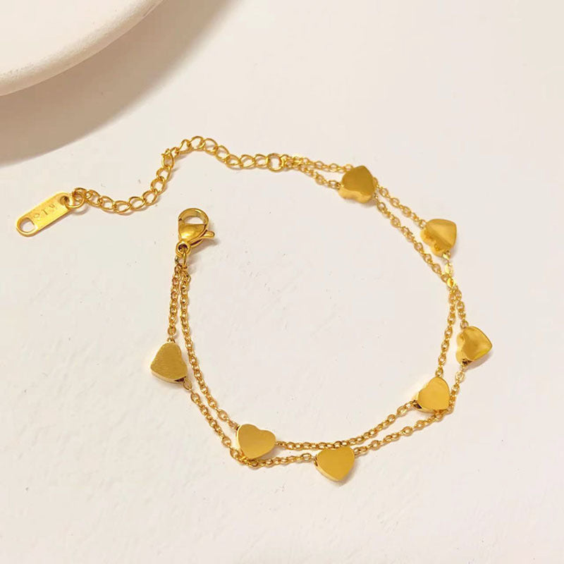 Heart-shaped double-layered new bracelet, stainless steel, fashion hand jewelry, versatile and trendy