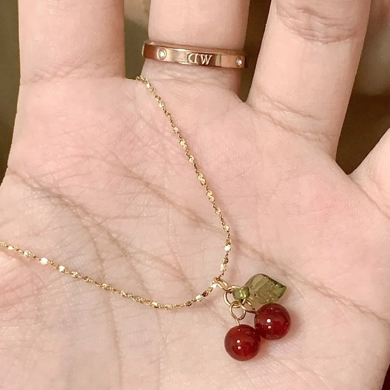 Japan and South Korea sense red cherry pendant necklace women’s summer light luxury clavicle chain accessories