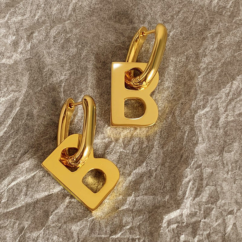 Love butterfly letter earrings stainless steel light luxury exaggerated sense of luxury