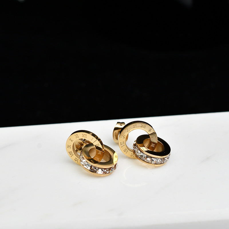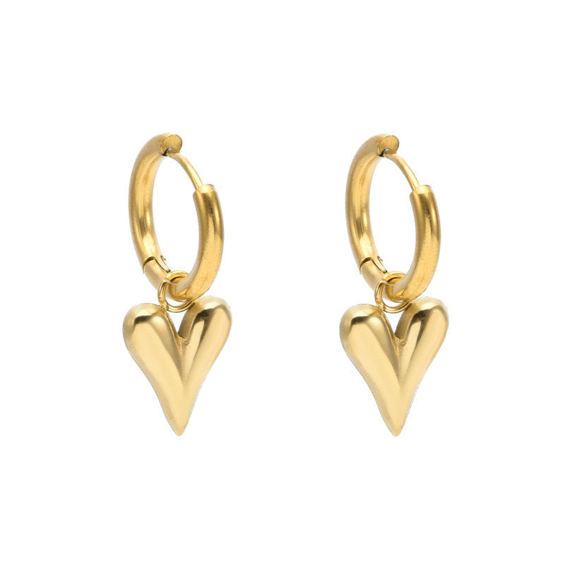 Circle earrings, snap-on love earrings, cold wind, women’s small circles, girly titanium steel, non-fading, heart-shaped earrings