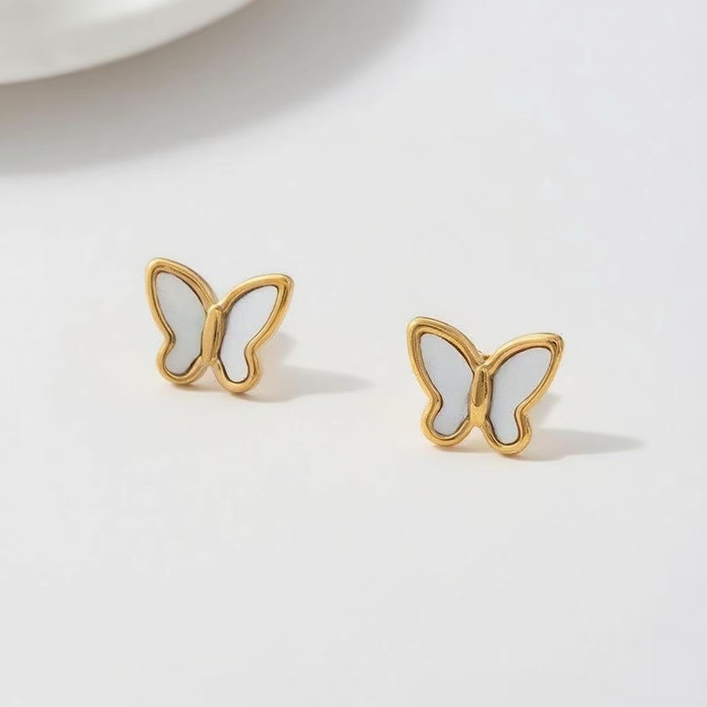 [G10172] white shell butterfly stud earrings golden ,[H16095] white shell butterfly necklace golden ,Necklace [H16095] + stud earrings [G10172] |