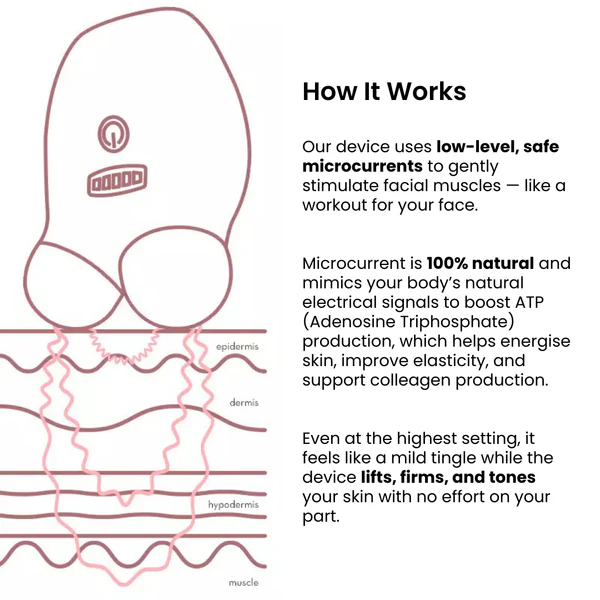 Targets facial muscles to improve firmness, elasticity, and overall tone—just like a professional spa treatment.