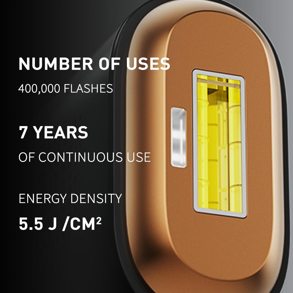 With 5 adjustable energy modes, you can customize your treatment based on your skin sensitivity and hair type. The automatic continuous flash mode makes it easy to glide across larger areas such as legs, arms, and back, reducing treatment time while maintaining consistent performance.