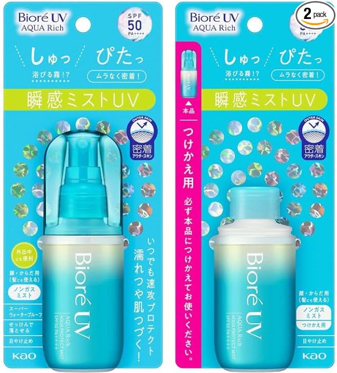 Enjoy effortless sun protection anywhere with the Bioré UV Aqua Rich Aqua Protect Mist Set. This ultra-fine mist provides powerful SPF50+ PA++++ defense in a refreshing, non-sticky spray—perfect for quick touch-ups over makeup or bare skin. Comes with a 60ml bottle and one convenient refill for long-lasting protection.