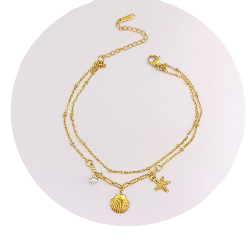 Sense of luxury, delicate shell claw diamond, starfish, titanium steel anklet, sweet ocean style, new ankle and foot chain 22