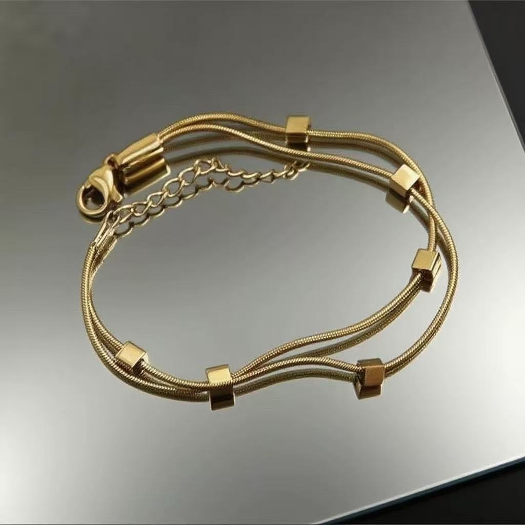 [E10053] Double Square Bracelet Gold ,[H10352] Square round snake chain necklace gold ,Necklace [H10352] + bracelet [E10053] |