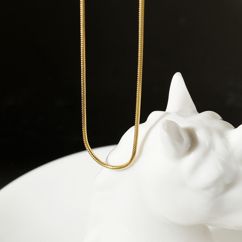 ZFASHION TREND VERSATILE 18K YELLOW GOLD PLATED SNAKE BONE NECKLACE NEW 1MM SNAKE CHAIN WITH SNAKE BONE CHAIN