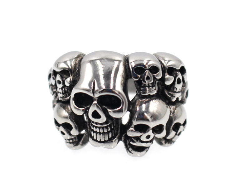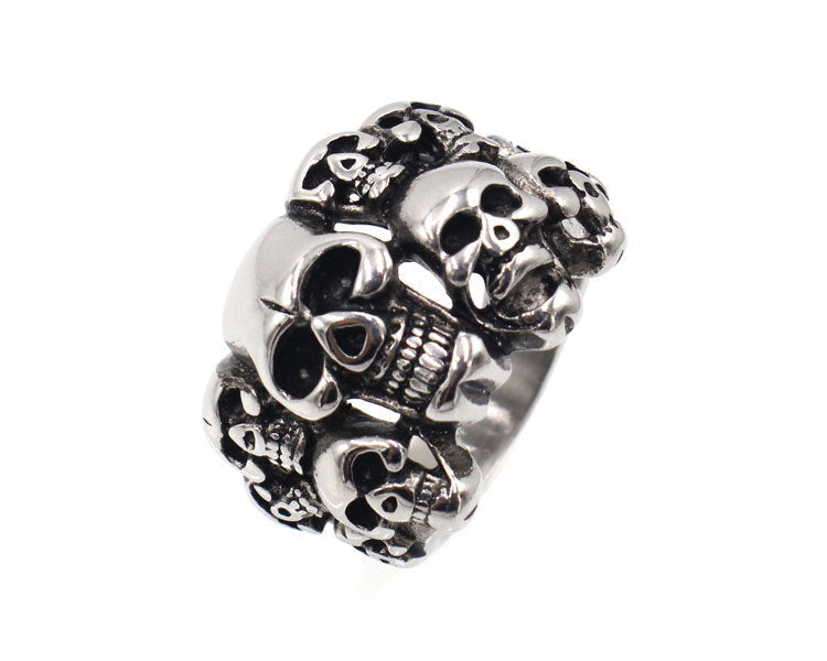 Vintage men’s titanium steel ring Trendy male domineering steel ring Unique multiple skull rings